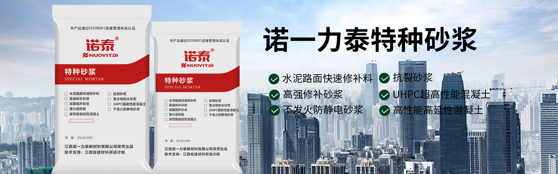 江西諾一力泰新材料有限公司位于江西宜春奉新縣,是專業(yè)從事灌漿料、水泥路面修補砂漿、抗裂砂漿、防水砂漿、保溫砂漿、隔聲砂漿、粘結(jié)砂漿等砂漿系列產(chǎn)品生產(chǎn)銷售的廠家。